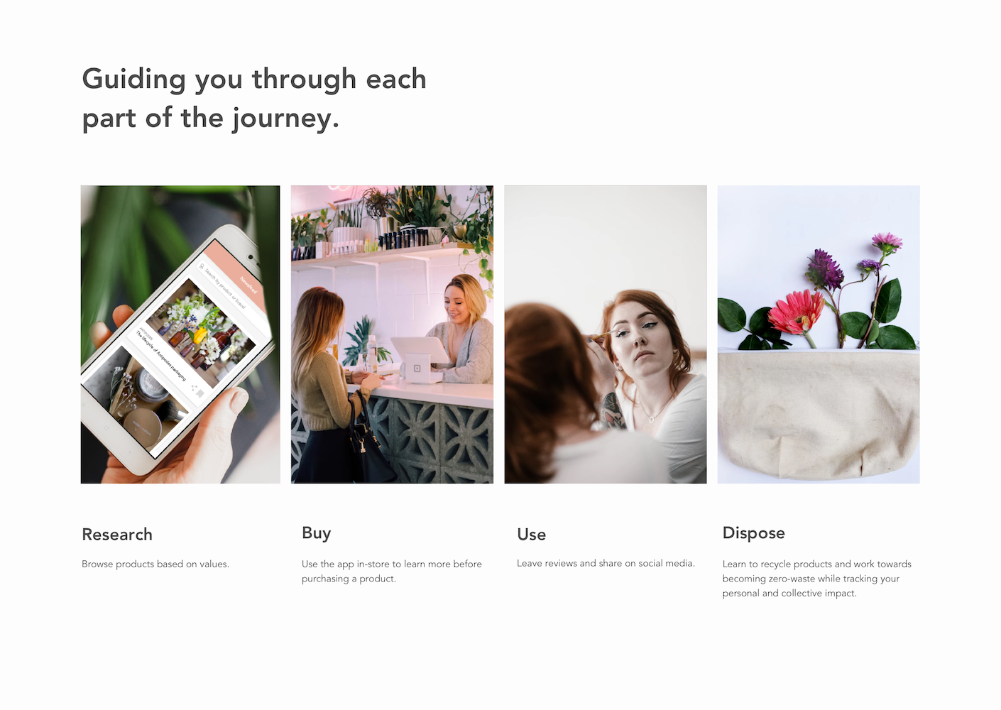 Consumers are slowly becoming more aware of the ethical, environmental, and health impacts of their purchases. There are market trends to back this up. We segmented audiences based on their attitudes and behaviours towards sustainability. The group we chose to focus on care about the environment but lack follow through. They are driven by social trends. Cosmetic purchases are often motivated by social conformity and brand loyalty. These actions are backed by extrinsic values. Based on the principals of the Common Cause Handbook, to influence this group and create long term change we must nurture intrinsic values including community.