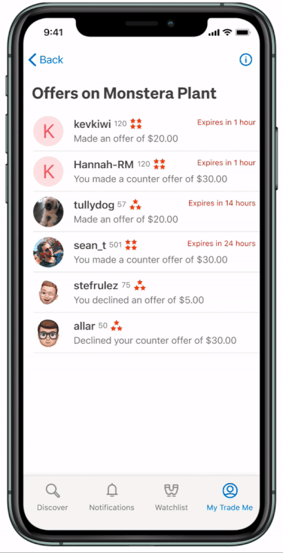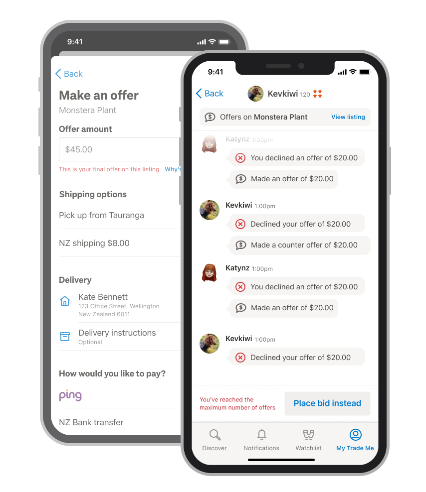 This feature creates better negotiation between Trade Me buyers and sellers by allowing them to exchange offers on marketplace listings.