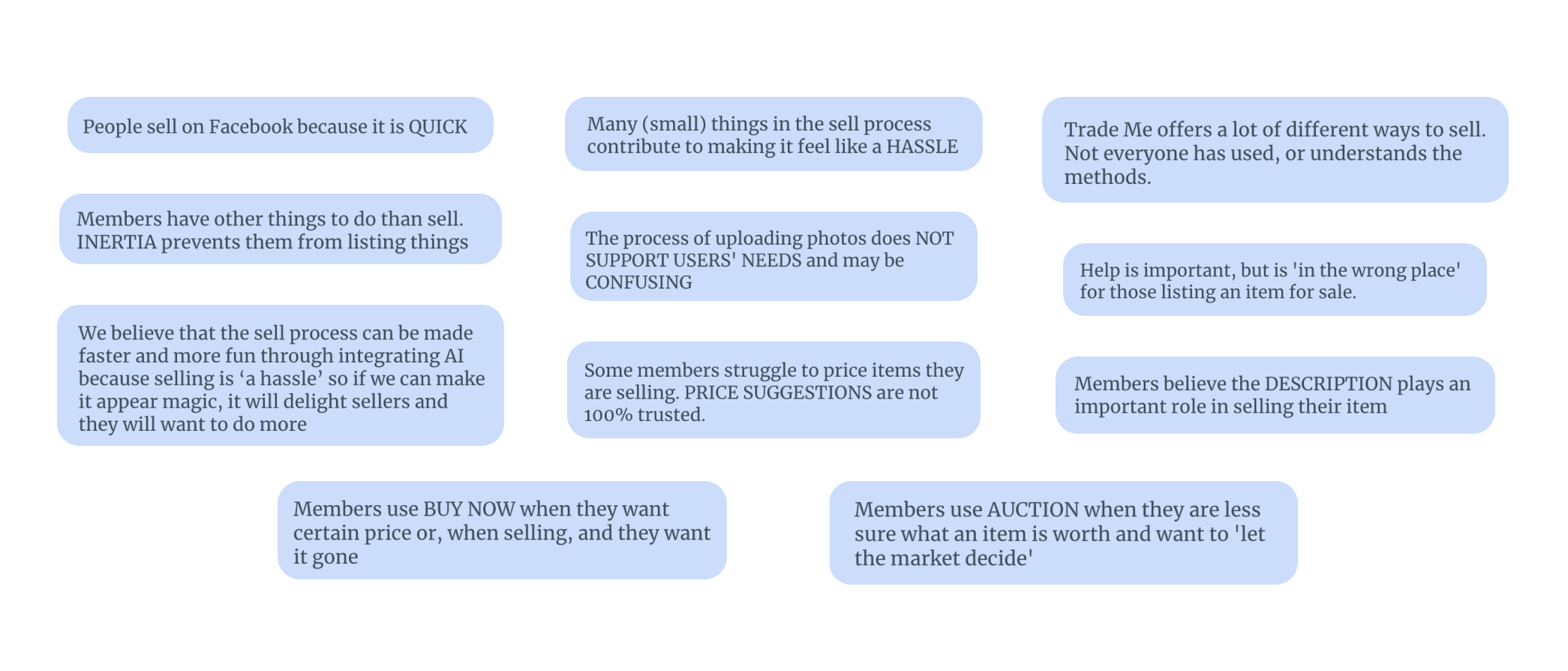 Existing user research from our repository revealed some key pain-points about the existing sell process and insights into how users list items on Trade Me.