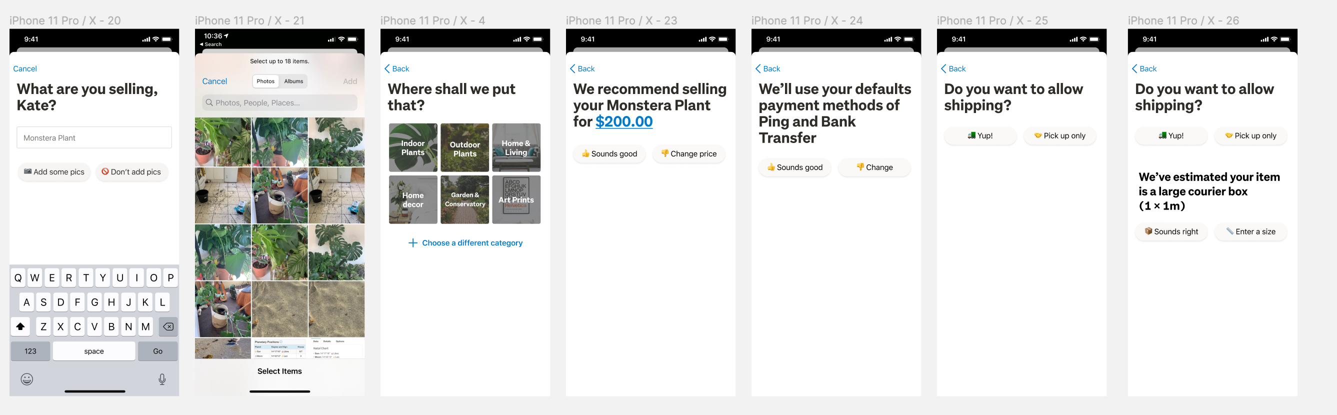 The old sell process took a minimum of 26 taps to list an item. I managed to decrease this down to just 7 taps, by implementing smart defaults and reconfiguring the flow to create a more intuitive user experience.